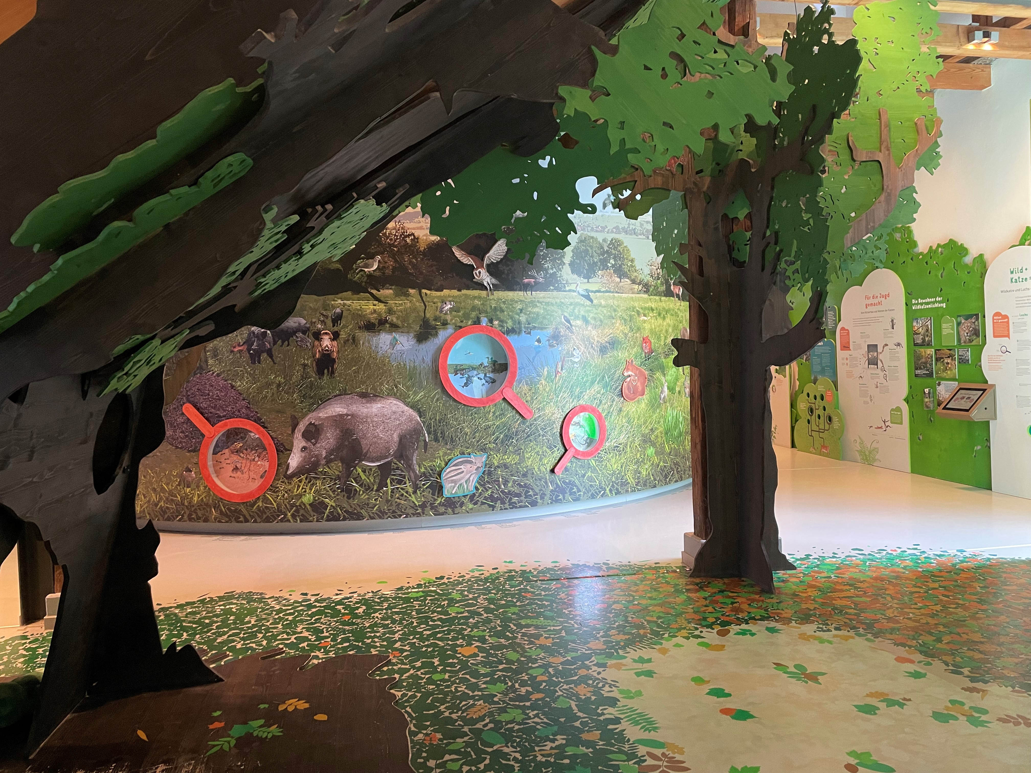Das große Wimmelbild – an der Rückseite des Kinos – zeigt einen Querschnitt durch den Lebensraum der Wildkatze.